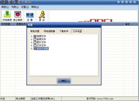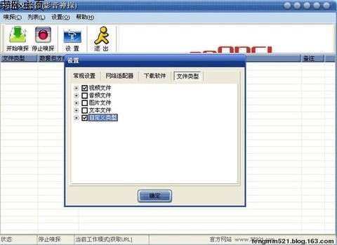 在开始使用之前最好设置一下,嗅探的文件类型中选择视频,如下图(这个图截取的很烂,充分说明截图软件不好):