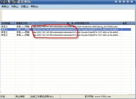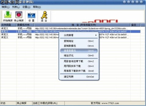 2. 上述工作准备好以后,点击“开始嗅探”,然后打开要播放的webplayer文件,等待一会,会出现如下图中的连接: